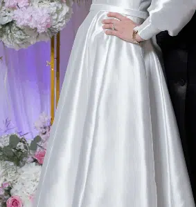 To BuySophisticated Custom made White Satin Gown for Sale