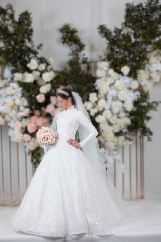 To BuyBeautiful Shimmers Queta Constantine White Scuba Gown for Sale.