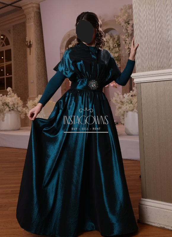 To BuyMagnificent Custom Teal Satin Gown for sister of Bride for Sale.