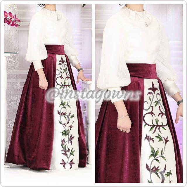 Elegant Treson & Co. By Gitty Porges Custom Made Maroon & Off White 2 Piece Gown for Sale