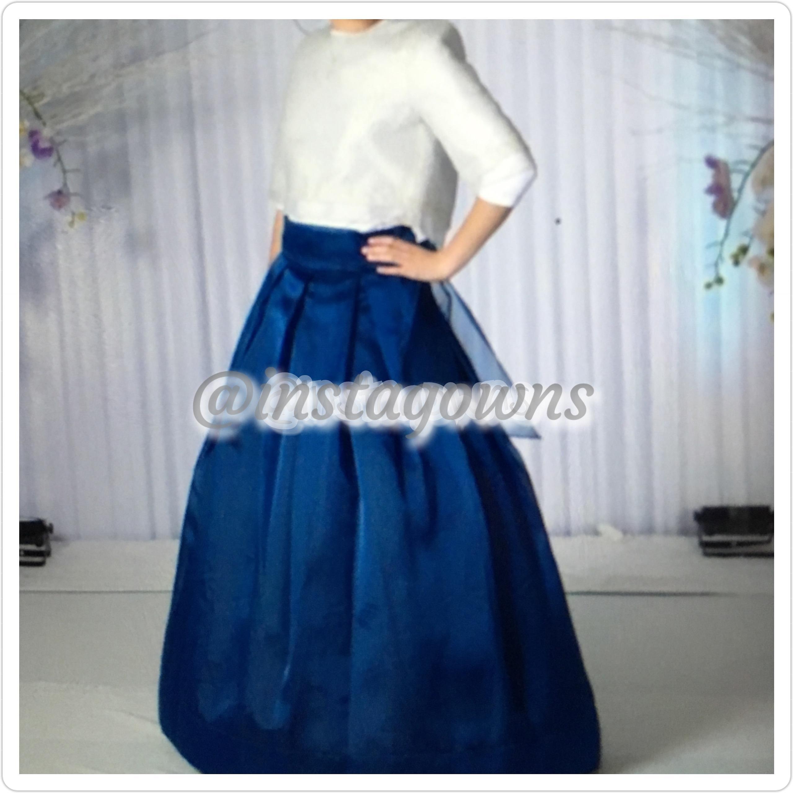 NothingCustom Made Silver & White High Waisted Gown for Rent