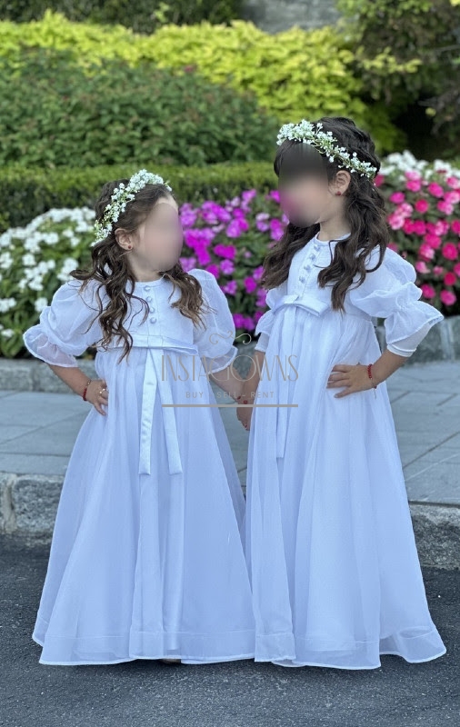 NothingCustom White & Blue Little Girls Gowns for Sale