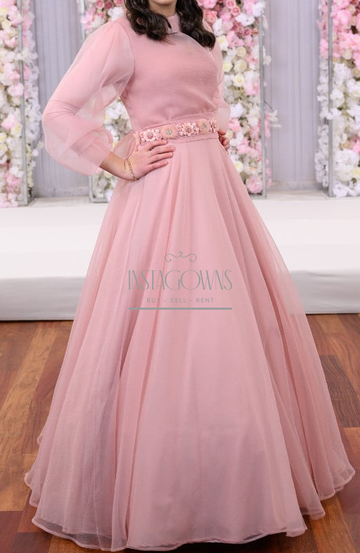 Gorgeous sister of the bride, blush colored gown with removable floral/ beaded sash.