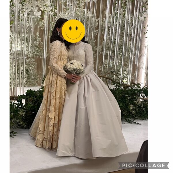 Tapered to fit a size 0,2 but pleats can be taken out of the back to fit a bit bigger or for maternity