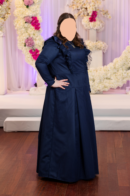 Custom sewn gown by Pessy Blum. Very slenderizing, worn once. The wearer is a size 2x, 5’6. Addition pictures/details available