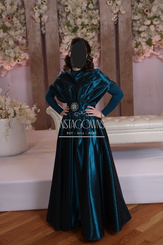 Magnificent Custom Teal Satin Gown for sister of Bride for Sale.