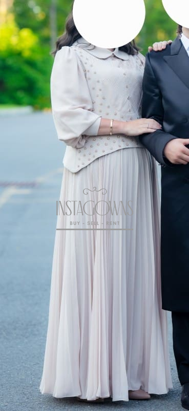 Magnificent nari (miri klien) sibling of bride beige gown size 10-12 gown for sale/rent. 5’2
