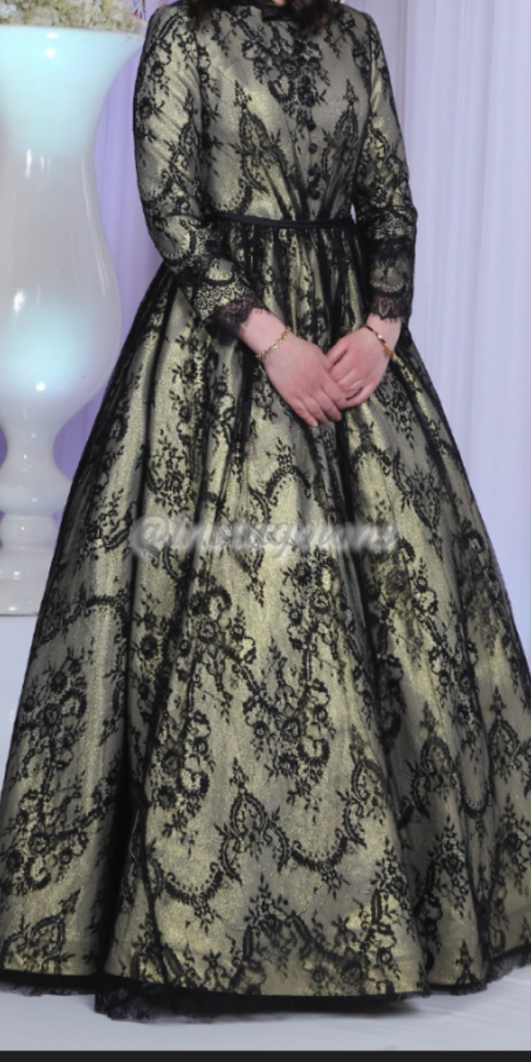 Silver sequins black and gold victorian style lace Gown for sale