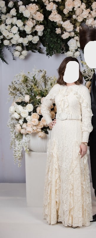 Sophisticated Sister of Bride Costarellos ivory lace gown with matching belt in size 4-6
