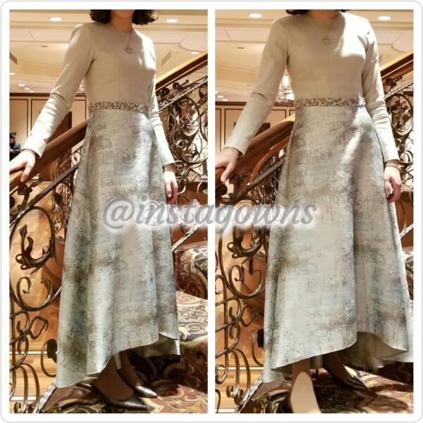 Stunning Custom made Designer High-Low very Slenderizing Silver/Grey Shimmery Top Gown for Sale