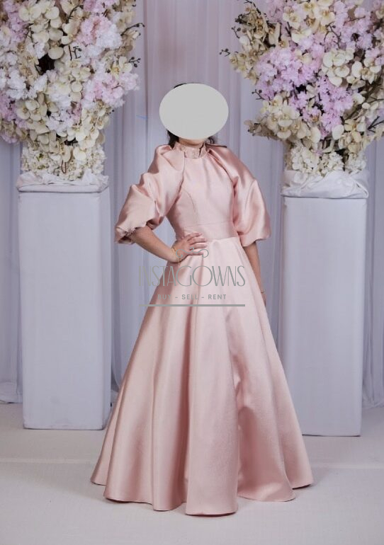 Stunning, Elegant Pink Gown with Puffed sleeves for sale