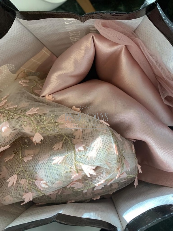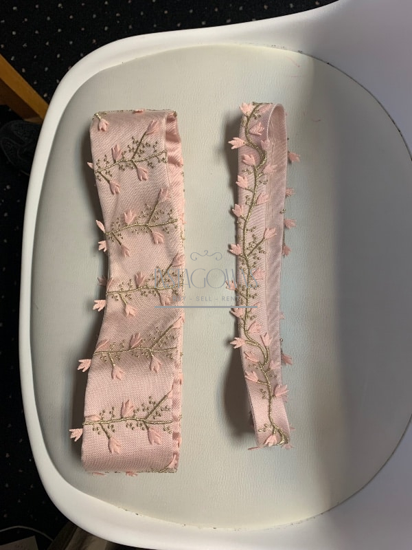 Banded Waist- matching belt to neck available ( see pic) — plus extra material of the overlay ( see pic) — and dress available Comes with petticoat.
