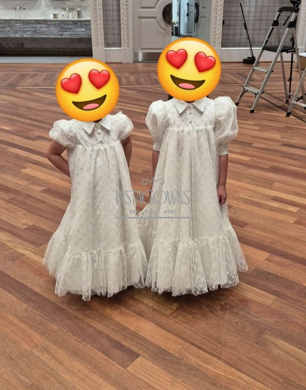 Girls’ ivory/peach tulle gown in size 11 and 12 for sale