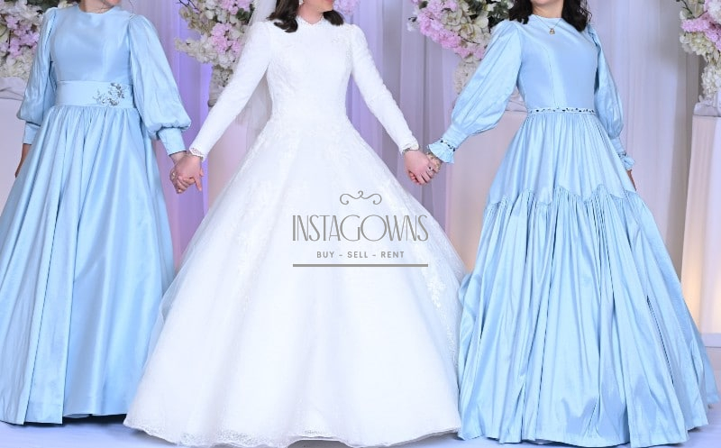 Magnificent Custom Teal Satin Gown for sister of Bride for Sale.