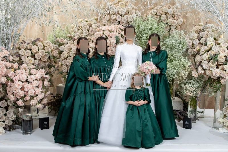 Stunning green sister of the bride custom gowns sizes 5 14 16 and 22 to rent or sell.