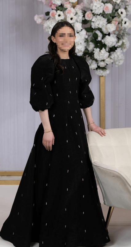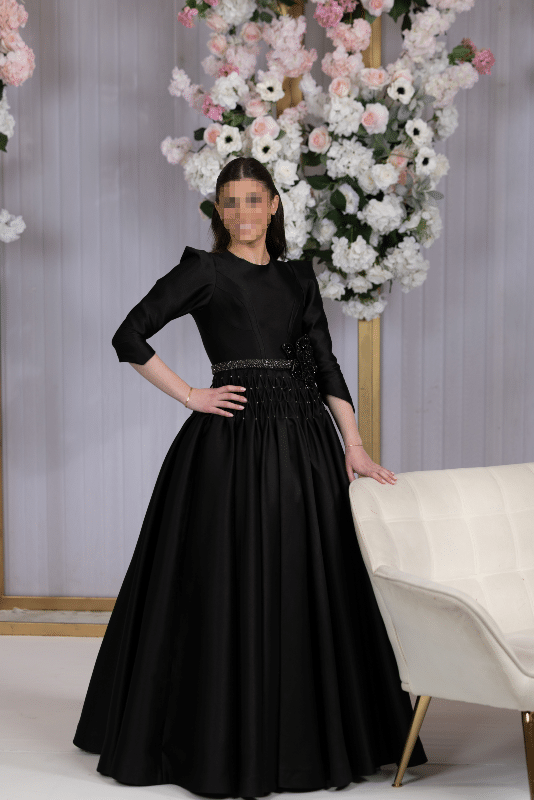 To BuyElegant Black Gown with Floral & Rhinestone Details