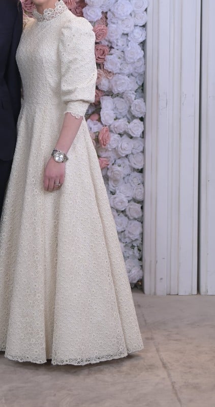 to Buy/RentElegant Ivory Lace High-Neck Sister of the Bride gown